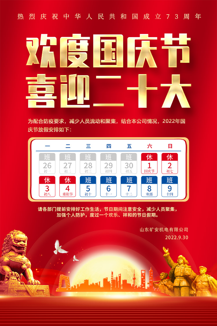 山東礦安機(jī)電有限公司2022年國(guó)慶節(jié)放假通知